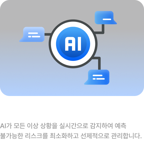Smart Energy & Environment Solution AI 기반 통합관제 시스템 AI가 모든 이상 상황을 실시간으로 감지하여 예측 불가능한 리스크를 최소화하고 선제적으로 관리합니다.
